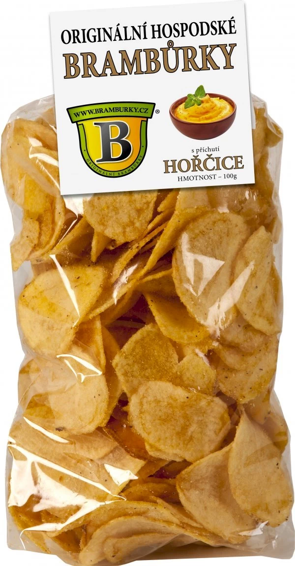Chipsy Bramburky Musztarda to wariant czeskich chipsów ziemniaczanych, które są charakteryzowane przez smak musztardy. "Bramburky" to po czesku "ziemniaki", co podkreśla ich podstawowy składnik.