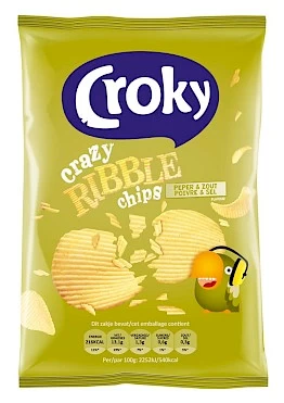 Chipsy Croky Ribble Pepper & Salt to prawdziwa gratka dla miłośników intensywnego smaku. Ta wersja wyróżnia się wyjątkowym połączeniem smaku pieprzu i soli, które nadają im charakterystyczny pikantny i delikatnie słony smak. Ich chrupkość i tekstura sprawiają, że są niezwykle przyjemne w jedzeniu, a ich falista forma dodaje im dodatkowego uroku.