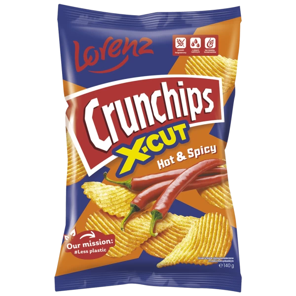 Chipsy Crunchips Hot & Spicy to coś dla miłośników pikantnych przekąsek. Zestawiając w sobie intensywność i ostrą nutę przypraw z chrupiącymi plasterkami ziemniaka. Ich charakterystyczna ostrość jest doskonale zbalansowana z głębokim, pikantnym aromatem przypraw. Ostrośc nie jest jednak na tyle mocna aby mogła przeszkodzićw cieszeniu się smakiem. Pozycja dla fanów ostrych przypraw ale i tych bardziej wrażliwych smakoszy.