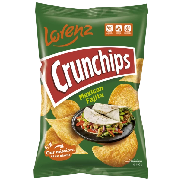 Chipsy Crunchips Mexican Fajita, zainspirowane tym klasycznym daniem, przenoszą tę wyjątkową kombinację smaków do formy chrupiącej przekąski. Każdy kęs tych chipsów to podróż po meksykańskich smakach - intensywna przyprawowa mieszanka, która wita nas pikantnymi nutami chili, delikatnie wzbogacona słodyczą cebuli i papryki. Chrunchipsy te nie tylko zaspokajają pragnienie oryginalnych doznań smakowych, ale także wywołują uczucie ekscytacji i ciekawości. Ich wyrazisty smak doskonale sprawdzi się jako dodatek do imprezowych spotkań czy wieczorów filmowych, dodając im niepowtarzalnego meksykańskiego smaczku. Choć nie jest to zwykła fajita prosto z patelni, Crunchips Mexican Fajita bez wątpienia przynosi kawałek meksykańskiej przygody do naszych codziennych przekąsek.