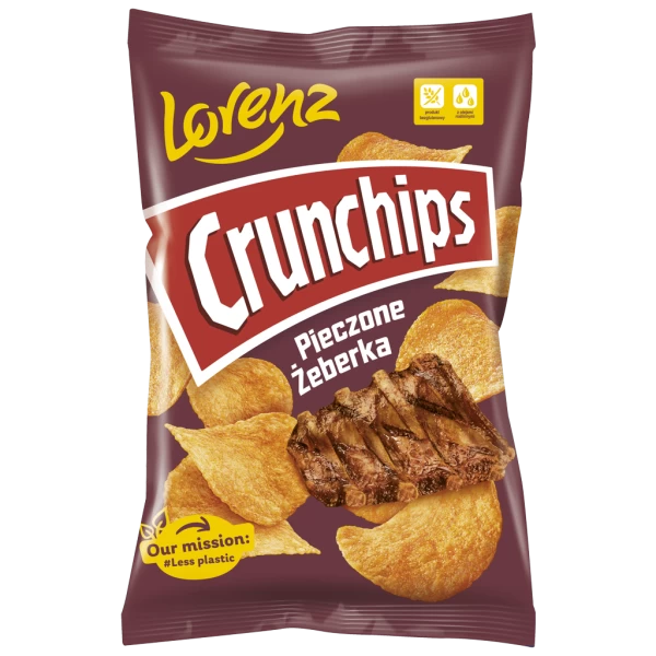 Chipsy Crunchips Pieczone Żeberka to absolutna uczta dla fanów intensywnego smaku amerykańskich żeber. Jeśli pragniesz doznania mięsnego, pikantnego i soczystego smaku, to te chipsy powinny przypaść Ci do gustu.