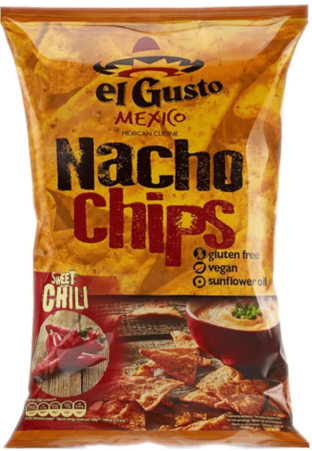 Chipsy El Gusto Mexico Sweet Chilli Nacho to wariant chipsów inspirowanych kuchnią meksykańską, charakteryzujący się słodko-pikantnym smakiem chili. Połączenie smaku słodkiego i pikantnego stanowi charakterystyczną cechę tych chipsów.