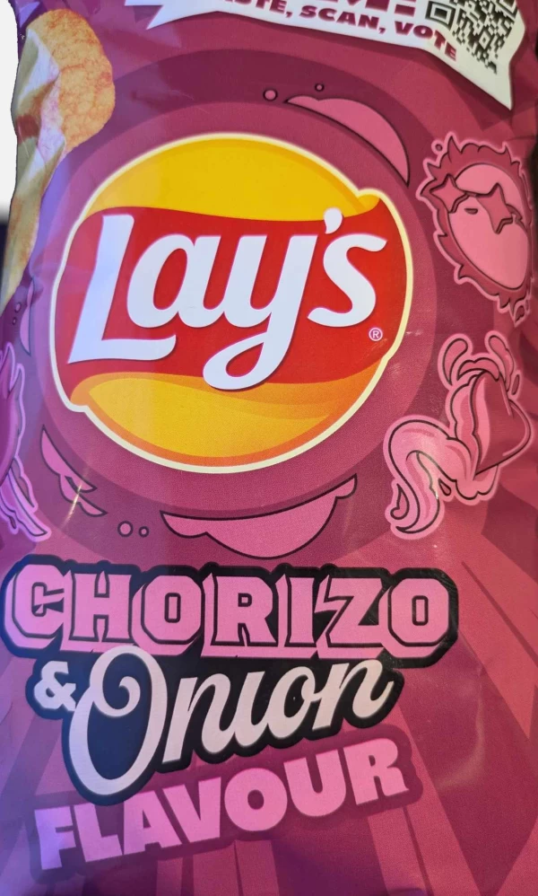 Lay’s Chorizo & Onion to chipsy inspirowane smakiem tradycyjnej hiszpańskiej kiełbasy chorizo, znanej z wyrazistego, pikantnego aromatu uzyskiwanego dzięki wędzonej papryce i starannie dobranym przyprawom. W połączeniu z delikatną słodyczą cebuli tworzą harmonijną kompozycję, która oddaje charakter hiszpańskiej kuchni. Limitowana edycja, dostępna w sklepach z Żabą w logo, która pozwala choć na chwilę poczuć atmosferę hiszpańskich tapas.