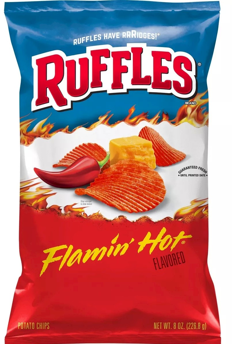 Ruffles Flamin' Hot to intensywnie pikantne chipsy, które zapewniają prawdziwą eksplozję ostrości. Zestawienie chrupiącej tekstury z gorącym, pikantnym smakiem sprawia, że te chipsy są nieodłącznym elementem dla miłośników ostrej przekąski. Świetnie komponują się z różnymi rodzajami dipów