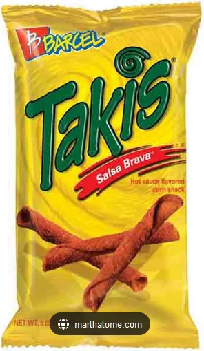 Chipsy Takis Salsa Brava Tortilla to pikantne chipsy tortilla, które są inspirowane smakiem hiszpańskiej salsy brava. Salsa Brava to pikantny sos pomidorowy popularny w Hiszpanii, często używany jako dodatek do potraw tapas. Mają intensywny smak papryczek chili, pomidorów i aromatycznych przypraw, które nadają im wyjątkową pikantność i głębię smaku